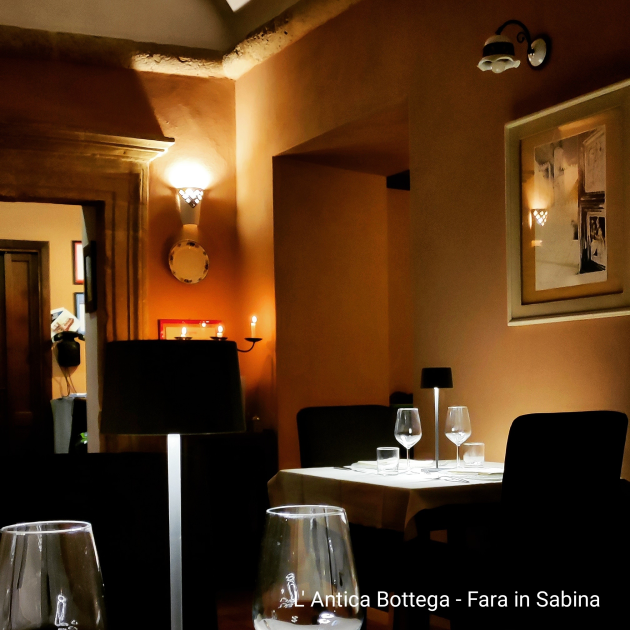 Il ristorante l'Antica Bottega si trova a Fara in Sabina (RI) nel cuore di un paesino che sembra un posto magico, dove il tempo si fa sottile e ti lascia libero di respirare, di stare con i tuoi ritmi. Il ristorante l'Antica Bottega è accogliente, si prende cura di te, troverai gentilezza e professionalità. La cucina è fortemente legata alla tradizione ed al territorio, nello stesso tempo creativa ed eclettica, innovativa, coinvolgente.